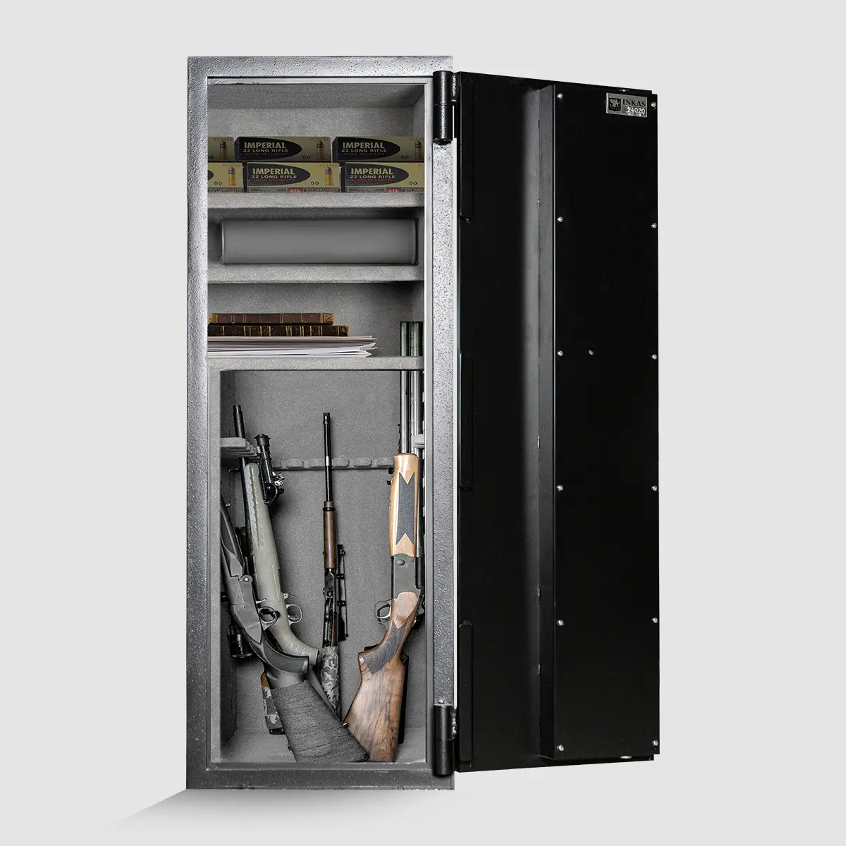 Esta caja fuerte para armas ofrece la máxima protección para la seguridad del hogar. Esta caja fuerte es segura contra la mayoría de los tipos de ataques de ladrones, como herramientas eléctricas y sopletes cortantes. Además, presenta una distribución interior personalizada para alojar cualquier tipo de armas.