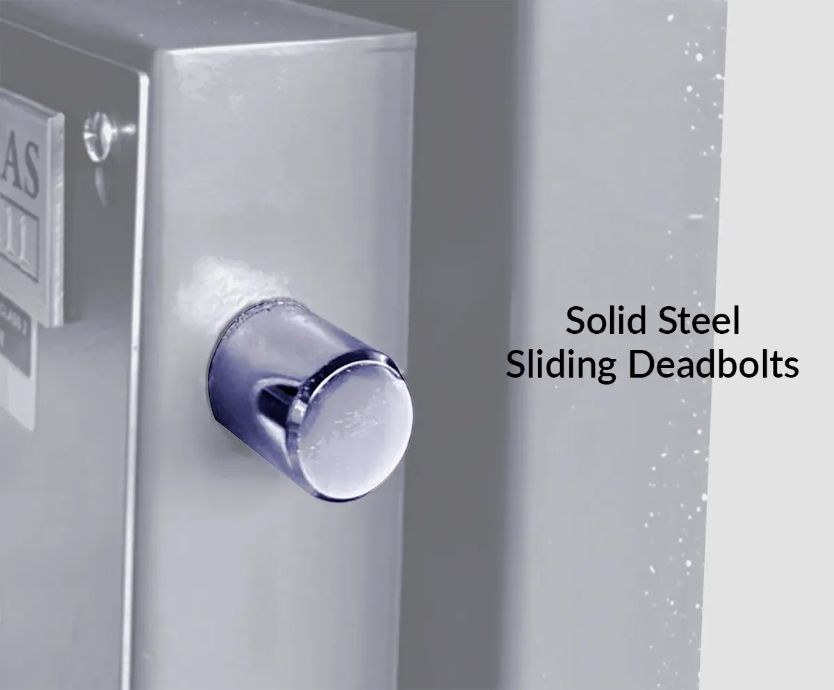 - پیچهای فولادی جامد برای محکم کردن درب صندوق در جای خود و محافظت در برابر تلاشهای کنجکاو کشویی میشوند