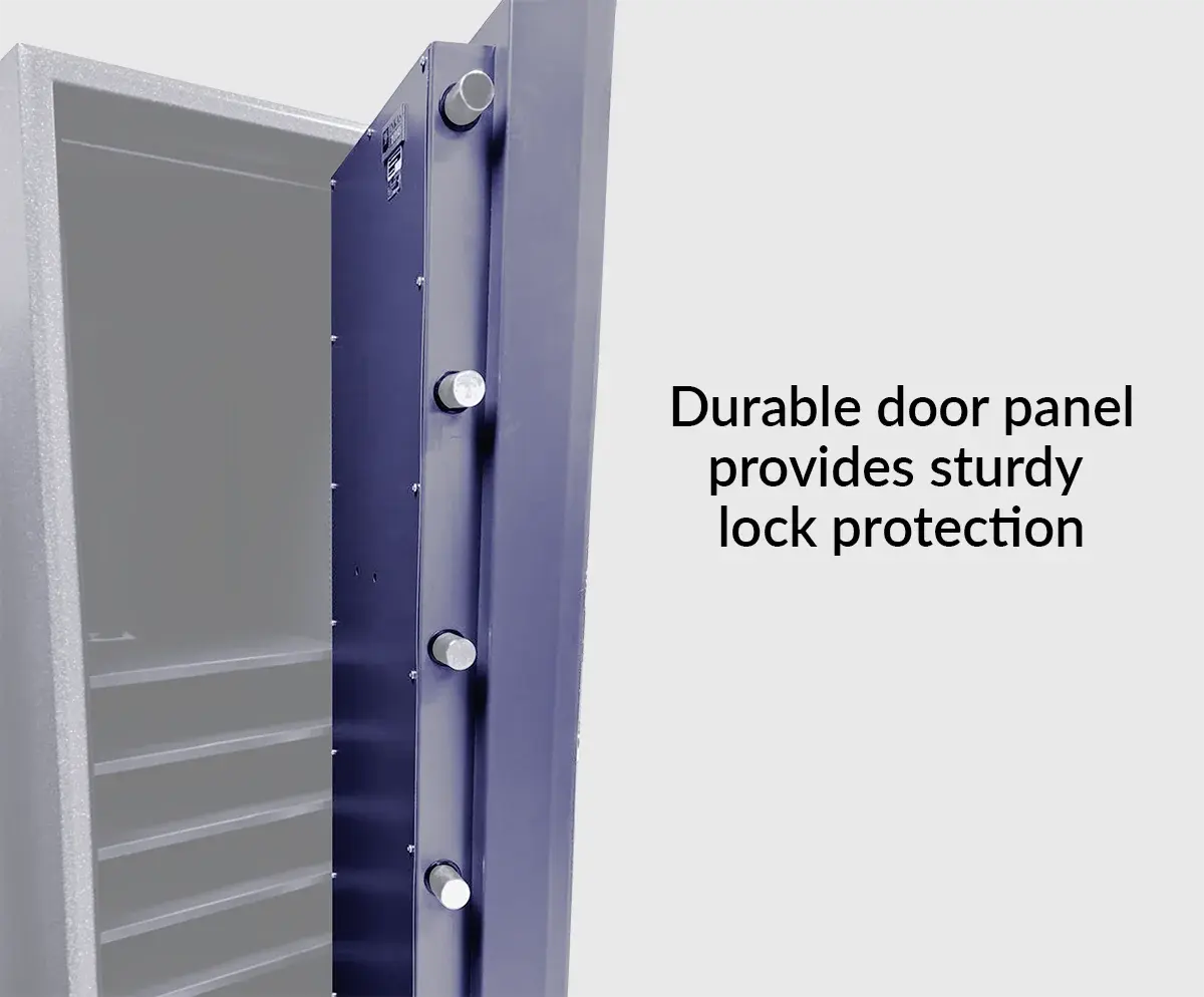 - 实心钢死插销滑动以固定保险柜门并防止撬动尝试